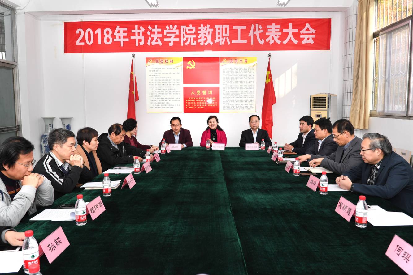 2018年10月31日下午14:30,书法学院第一届教职工代表大会在书法学院会议室隆重召开。学院全体教职工参加了本次大会,会议由学院分工会主席李颖主持,校工会副主席茌淑君同志应邀出席会议并致贺辞。