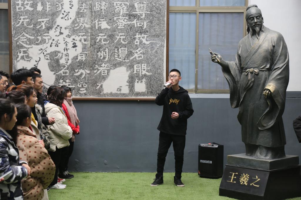 本次活动随着歌曲表演《兰亭序》的乐声缓缓拉开序幕,歌声余音缭绕,气氛十足。首先,同学们以崇敬之心诵读了先贤佳作《兰亭序》。接着专业老师孙钢为本次活动提笔畅书,同学们也纷纷用自己擅长的书体进行王羲之《书论》的创作。最后,可镂印社的社员们向全体同学展示了他们的篆刻作品。