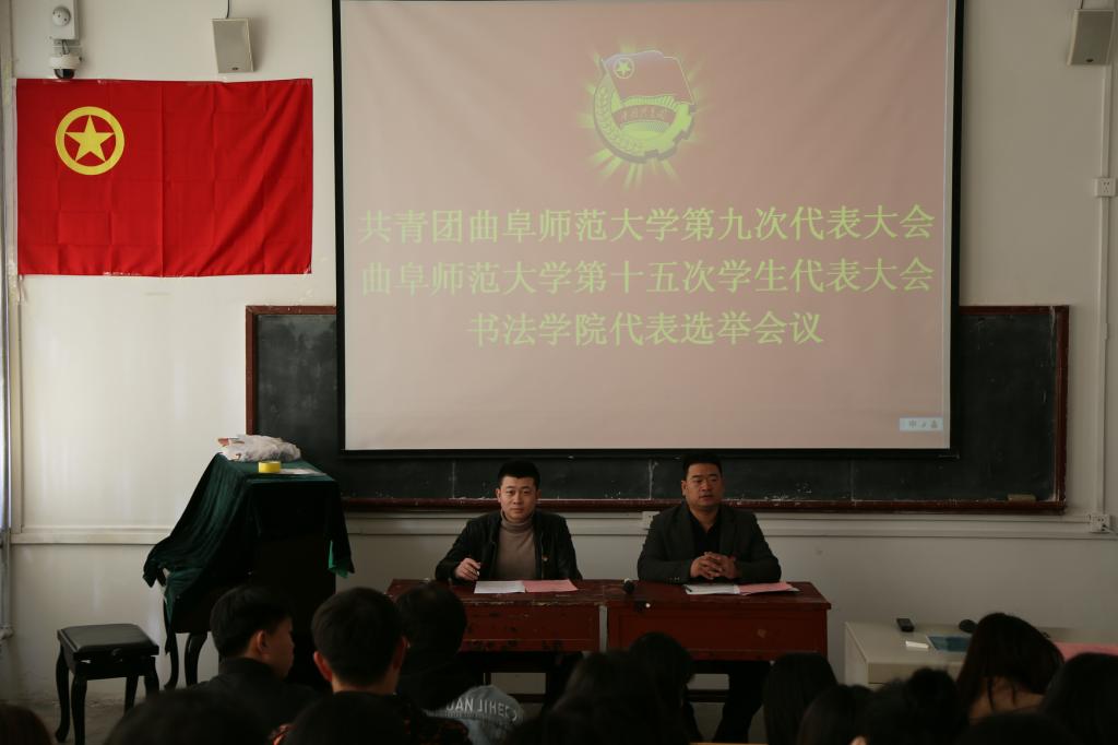 3月15日,书法学院学代会代表选举会议在101教室召开,团委书记杨玉强出席大会,学院学生会成员、各班学生代表、研究生代表共53人参加。团委副书记于立松主持会议。