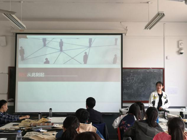 在三班教室, 组织宣传委员邸楚雯向同学们介绍了“三走”主题、内容及其意义,重点解读了当前大学生沉迷网络的危害案例,与同学们一起讨论了在大学遇到的学习与生活上的各种问题以及解决方法,最终推荐大家在紧张学习之余采用运动放松而不是网络放松。