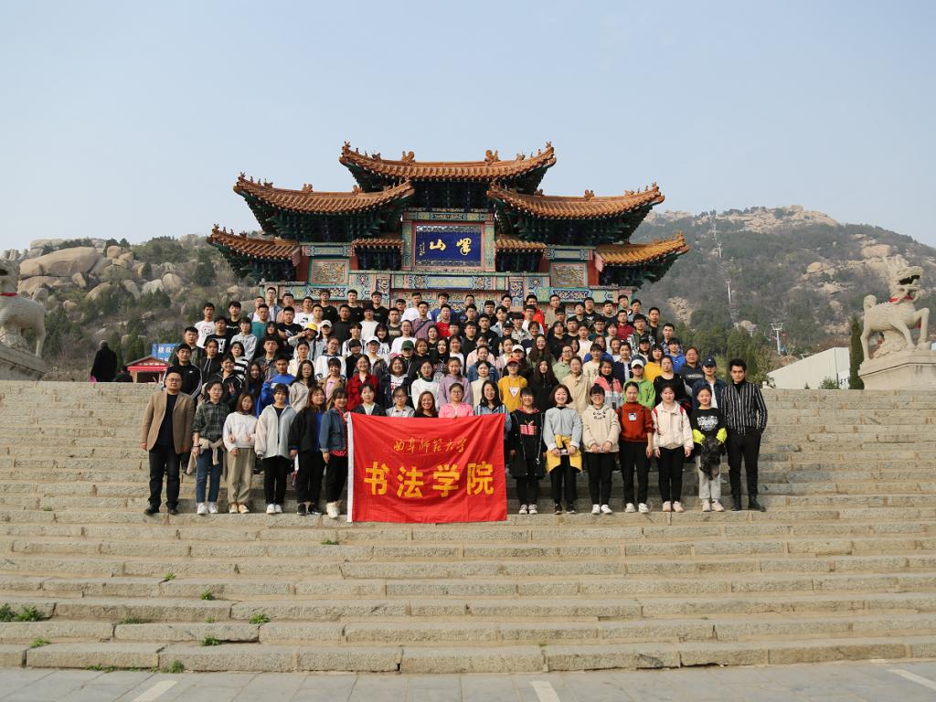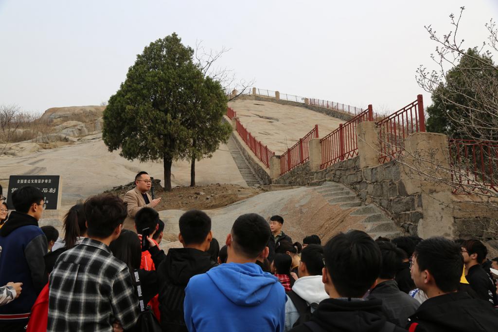 本次考察先后参观学习了文化奇观铁山、岗山、邹鲁美术馆以及享有“邹鲁秀灵”美誉的峄山。在岗山,陈培站老师就山中石刻的历史背景、字体演变等问题为大家进行了详细的解读,随后同学们登山与北朝摩崖刻石进行了近距离的接触,并时有自己的理解与感悟。在邹鲁美术馆内,大家领略到丰富的金石拓片资源,在老师的耐心讲解下,同学们在一张张经典拓片前流连忘返。 最后的峄山考察中,由于山路陡峭,同学们在欣赏摩崖刻石的同时,彼此鼓励,互相帮扶,最终全体登上了峄山山顶。