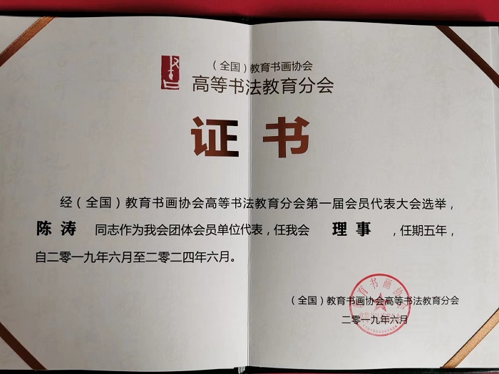 在本次会议上,必威比赛精彩看点 当选为全国教育书画协会高等书法教育理事单位,学院常务副院长陈涛当选为全国教育书画协会高等书法教育分会理事。