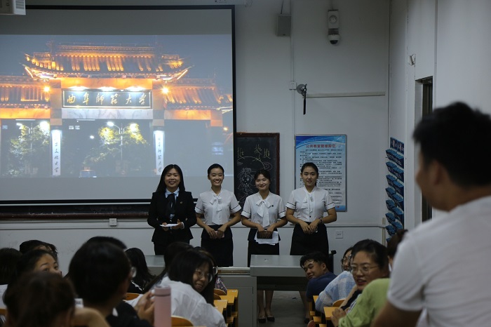 校史馆代表结合多媒体以生动幽默的语言为全体同学讲述曲园的历史和优秀校友事迹。随后,介绍了校园美景,表明每个建筑都有它独特的意义,以便于新生对校园更深刻的了解。并向新生介绍了学校“韧性、睿性、德性”的精神品质,倡导大家用美的眼睛去发现母校之光,用美的心境去感悟母校之美。问答环节同学们都积极表达了自己的想法,现场氛围十分活跃。活动尾声,校史馆代表为我院新生分发了校友拍摄并制作的校园明信片,作为宣讲活动的纪念。
