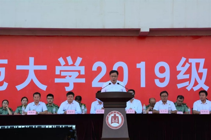 9月21日上午8时,曲阜师范大学2019级新生军训成果汇报表演暨表彰大会在南操场顺利举行。我校领导出席了本次大会。