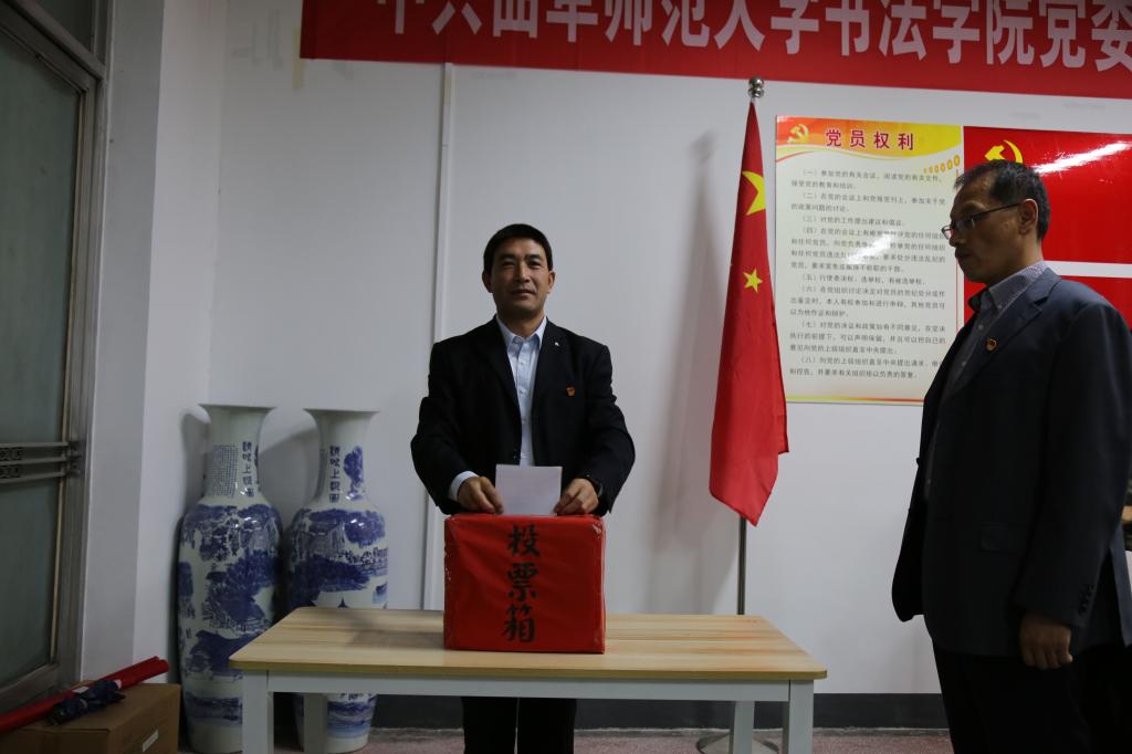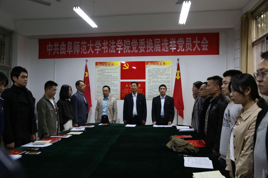 会议在庄严的国歌声中开始,党委书记荆兆清代表委员会作了工作报告,他指出党员要贯彻落实党建工作,加强自身思想教育,提升人才培养管理的能力。随后,副院长陈涛宣读书法学院党委换届办法草案。会议以举手表决的方式通过了支部委员会委员选举办法、支部委员会委员候选人名单、监票人名单,以无记名投票的形式,差额选举产生了新一届支部委员会。整个会议过程中,全体党员佩戴党徽,精神饱满,会议氛围民主和谐,庄重严肃。大会在圆满完成各项议程后,在雄壮的《国际歌》中结束。