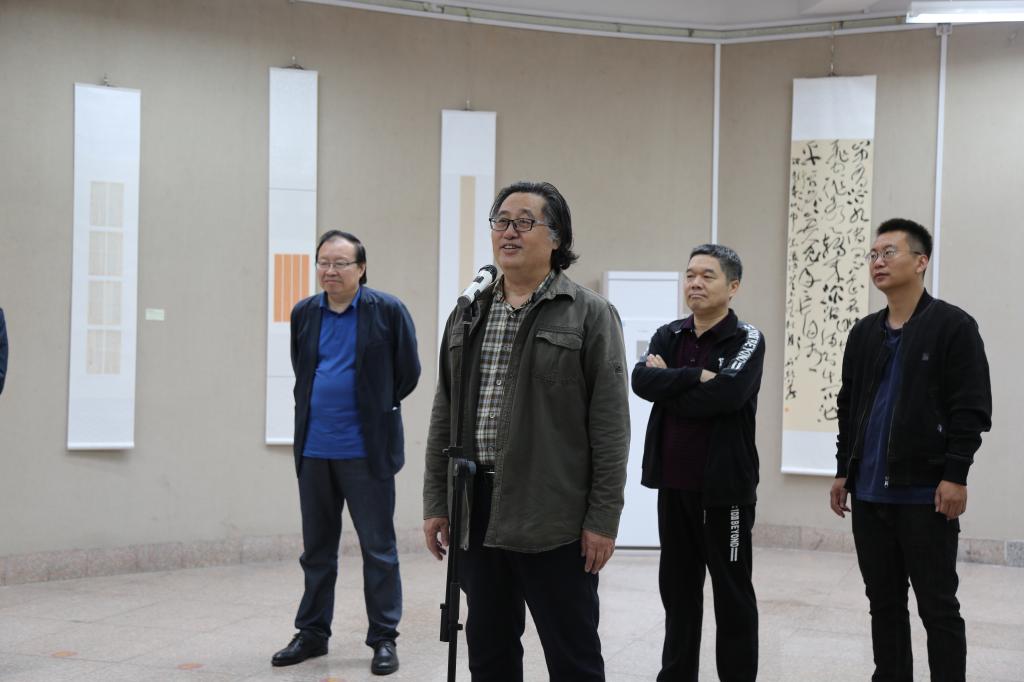 开幕式伊始,由陈涛院长致辞。他向大家介绍,本次展览的书法作品为渤海大学书法硕士研究生近年来的精心集成,是一次难能可贵的视觉盛宴,也是一次难得的交流机会。希望学院师生能够通过此次联谊活动不断交流、潜心创作、刻苦钻研,进而推动书法学院教育事业的发展。随后,陈国成先生在发言中表达了对书法学院的热爱,谦逊的感谢参加本次展览各位领导、老师和同学,希望大家对作品做出指导、提出建议。也希望通过这次展览,可以与书法学院师生相互交流,共同进步。最后,乌峰老师对大家的作品提出了高度赞扬,他认为能够在研究生这一阶段就达到这一水平实属不易。