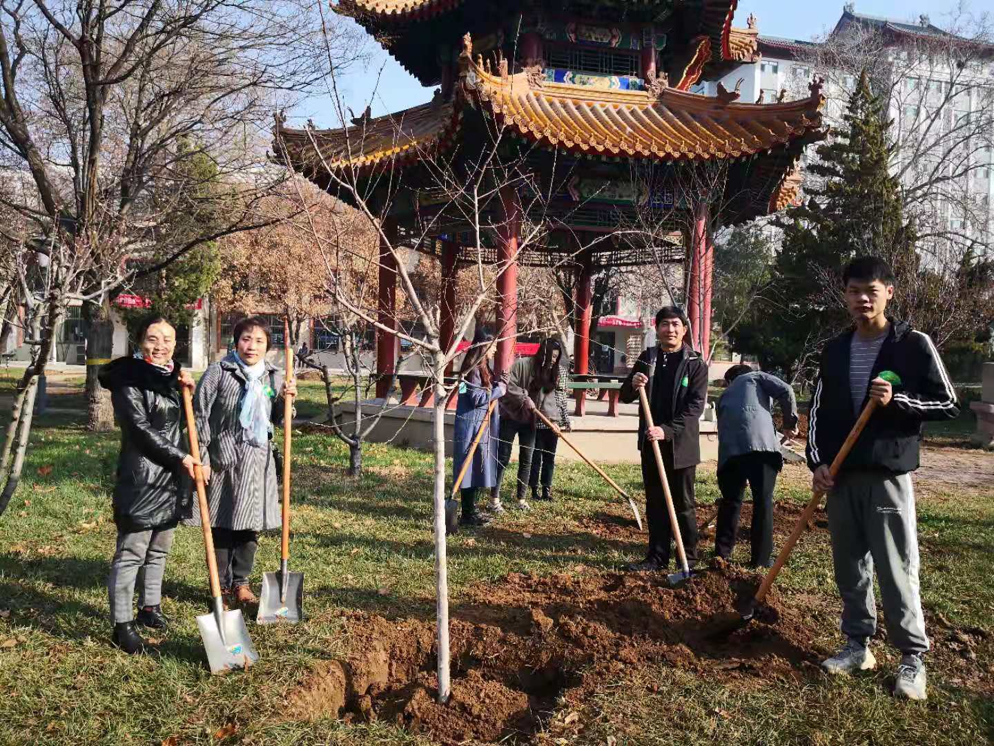 在第43个植树节到来之际,2021年3月12日上午,我院党委副书记胡乃永、工会主席董家鸿、教学秘书宋开英以及学生代表在学校桃李园参加了校后勤工会举办的“我为曲园添新绿”植树活动。