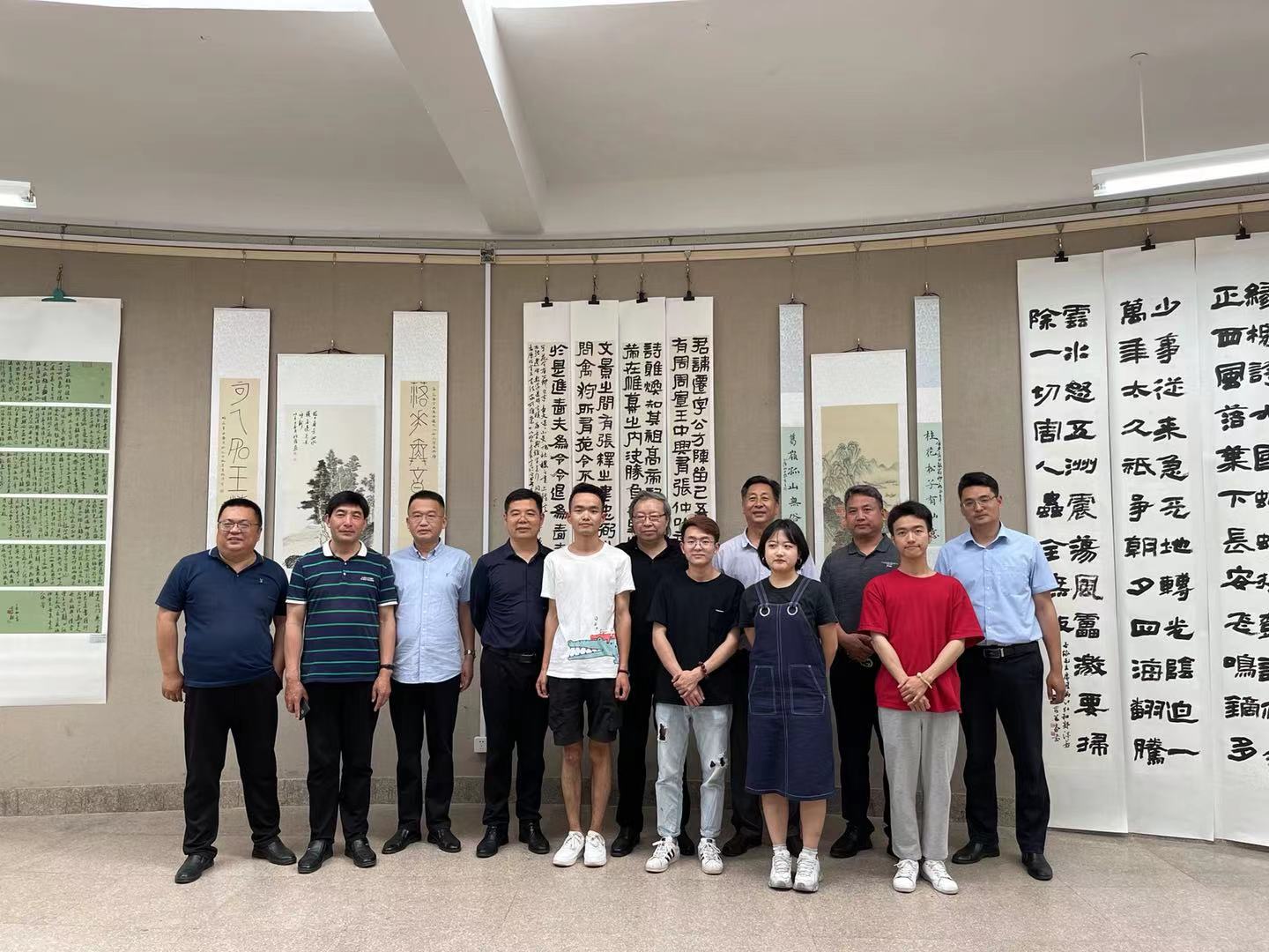 6月3日下午,山东蒙山旅游集团有限公司党委书记、董事长陈勇,党委副书记、总经理武传强,党委委员、副总经理张伟,人力资源部负责人秦浩远,市场营销部部长闫强,山东沂蒙山旅游发展有限公司总经理徐永宏,山东沂蒙山云蒙景区旅游发展有限公司副总经理孟祥强等人在学校校友办公室张琳主任、书法学院党委书记荆兆清、党委副书记胡乃永、院长助理乌峰教授、办公室主任刘育华等人的陪同下参观了书法学院2021届本科毕业生胡永胜、黄子健、肖雅清、李万豪《乐也在斯》书画篆刻展。