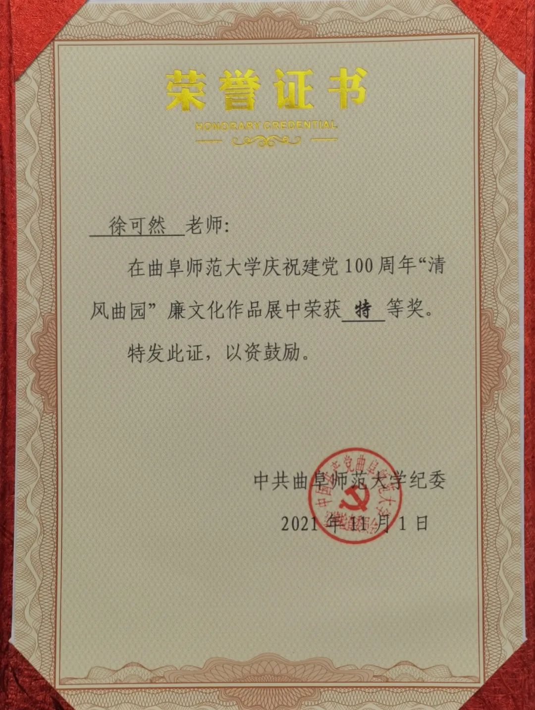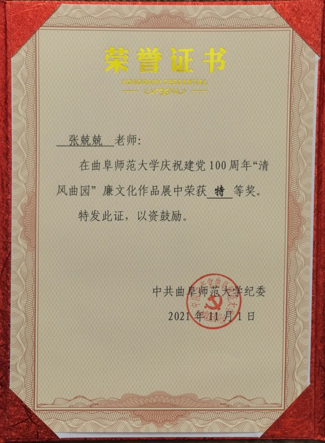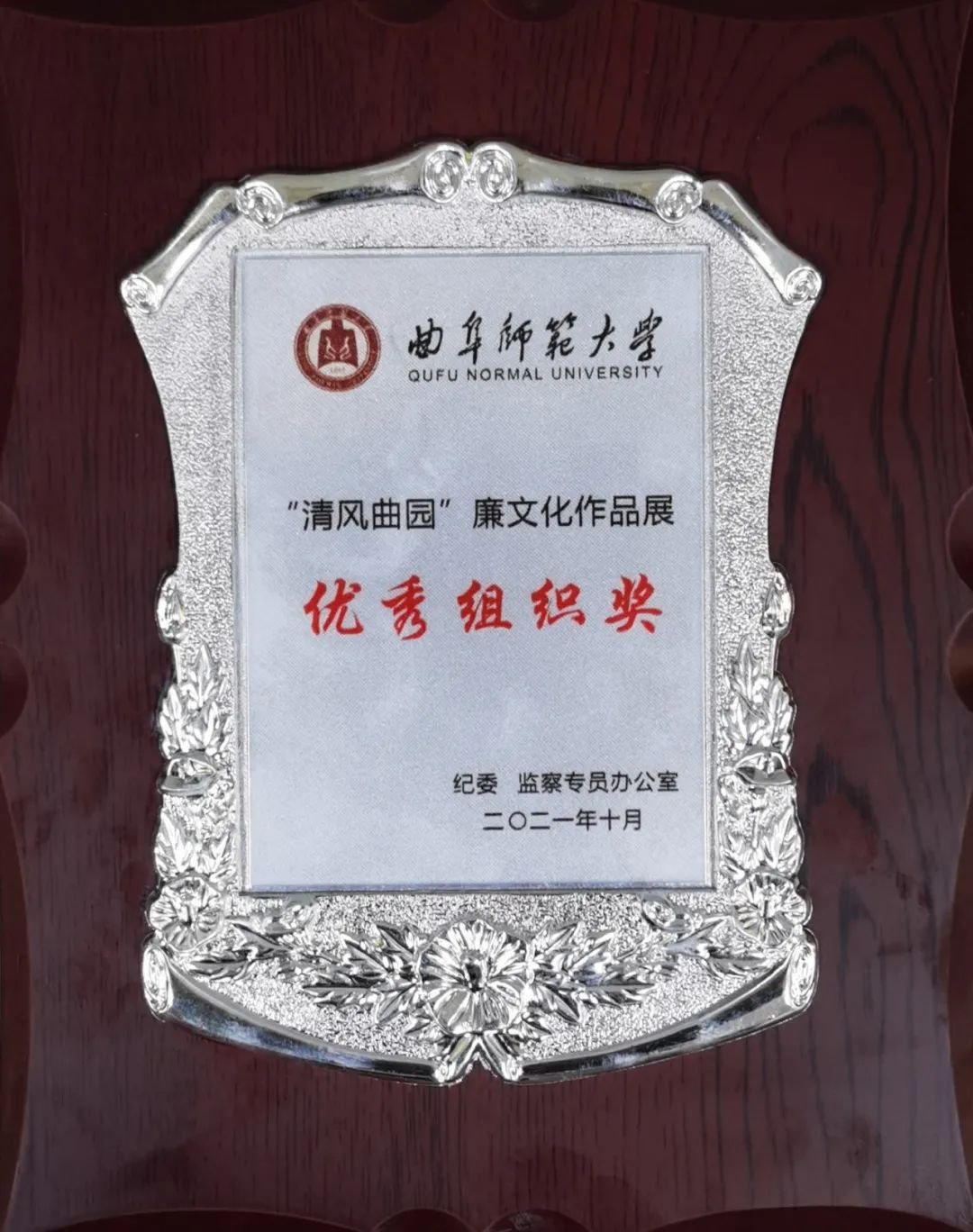 “清风曲园”廉文化作品展是由曲阜师范大学学校纪委、监察专员办公室组织的庆祝建党100周年的书法作品展。本次展览的主题是“爱党爱国爱校·清正廉洁担当”,旨在积极弘扬社会主义先进文化,加强廉洁教育和学校廉政文化建设,倡导形成以廉为荣的社会风尚,营造清正廉洁的校园文化氛围,用健康向上、追求清廉的文化充实师生员工的精神世界,使大家在接受艺术熏陶“润物无声”中提升廉洁意识、增强廉政观念。