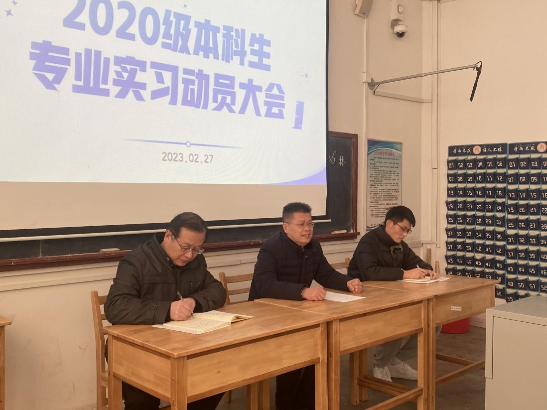 2月27日下午,我院2020级实习动员大会在阶梯教室召开。学院党委书记、院长刘建新,副院长李建、辅导员韩宜君及2020级全体本科生参加会议。本次动员大会由辅导员韩宜君主持。